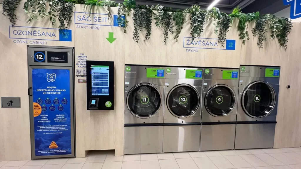 Klientu rīcībā ir 3 veļasmašīnas ar 10 kg ietilpību un 2 lielapjoma veļasmašīnas ar 20 kg ietilpību, kas ļauj vienlaicīgi izmazgāt līdz pat 70 kg veļas. Žāvēšanai pieejami 3 žāvētāji ar 15 kg ietilpību un viens īpaši ietilpīgs 25 kg žāvētājs, kas ir ideāli piemērots lieliem un bieziem tekstiliem.